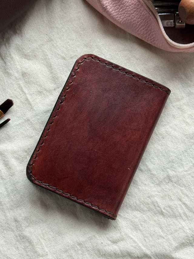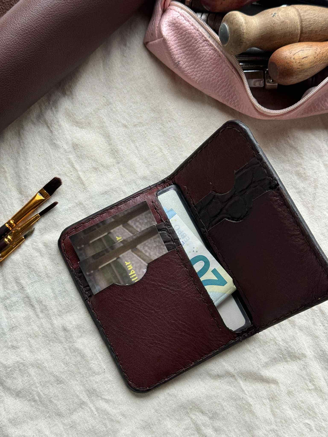 Chaque portefeuille est découpé, assemblé et cousu entièrement à la main, point par point, garantissant une grande robustesse. Le cuir utilisé est un cuir belge ou italien de haute qualité, reconnu pour sa résistance et sa tenue dans le temps. Avec les années, il développe une patine naturelle, rendant chaque modèle encore plus unique.